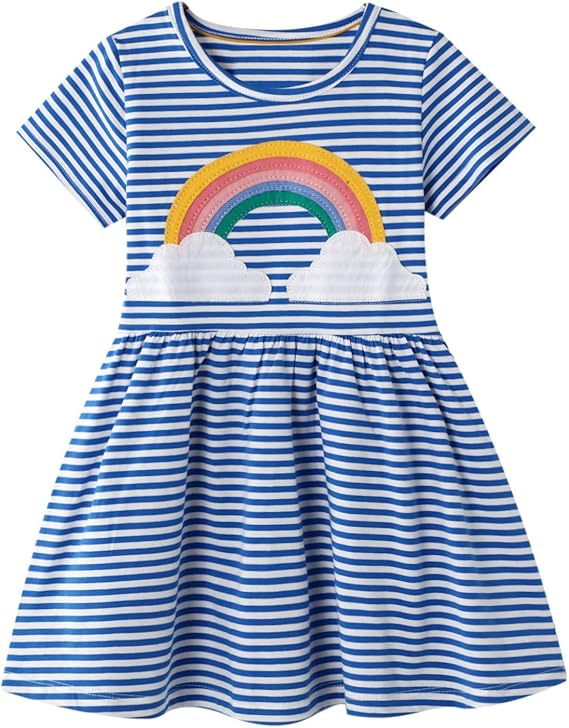 FILOWA Fille Robes Enfant Manche Courte Coton Ete Pas Cher Rayure Poche Paillette Tunique T-Shirt Robe Filles Anniversaire Vêtements 2 3 4 5 6 7 Ans: Amazon.fr: Vêtements et accessoires