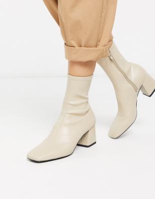 Monki - Bottines stretch à talon carré - Beige | ASOS