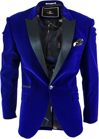 Veste homme blazer velours doux bleu roi fermeture 1 bouton style smoking chic décontracté: Amazon.fr: Vêtements et accessoires