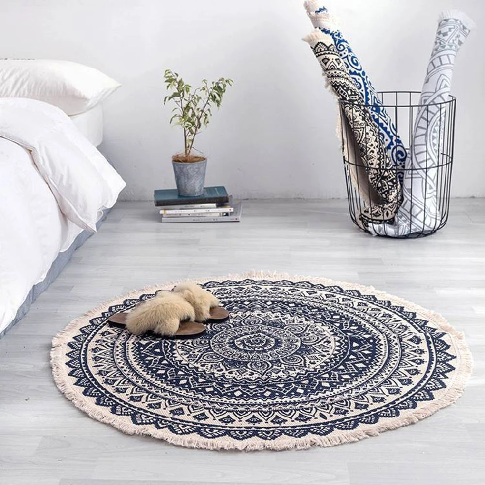 Estilo étnico algodão linho tapete redondo artesanal tecido tapete do vintage simples tapeçaria quarto sofá almofada|Tapete| - AliExpress