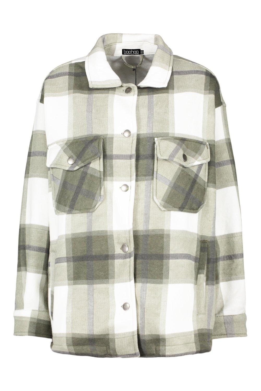 Veste style chemise brossée à carreaux verts. | PrettyLittleThing FR