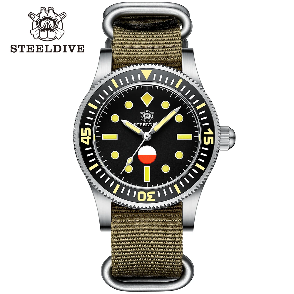 Relógio de mergulho masculino, steeldive masculino relógios automáticos diver 20atm à prova dc3 água relógio de
