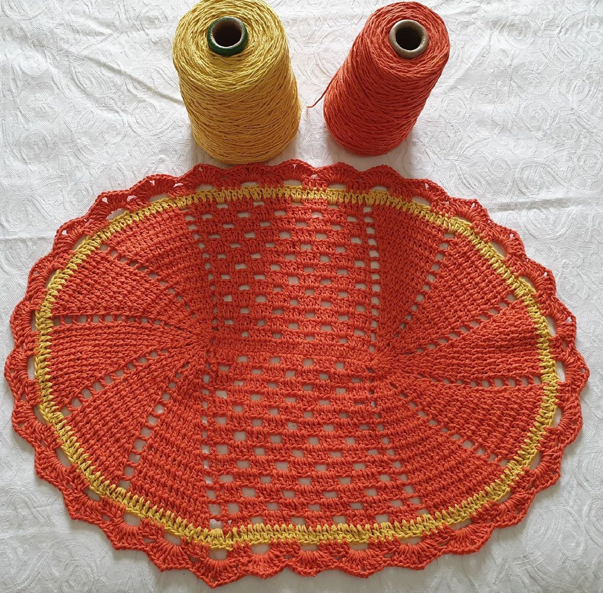 Tapete Oval de Crochê Laranja | Shopee Brasil