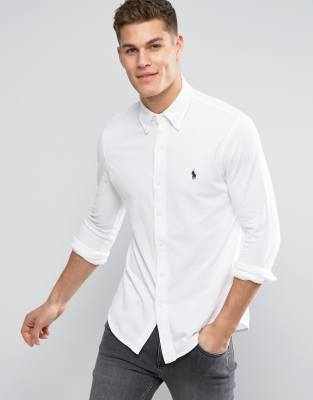 Camisa slim de piqué con botones en blanco de Polo Ralph Lauren | ASOS