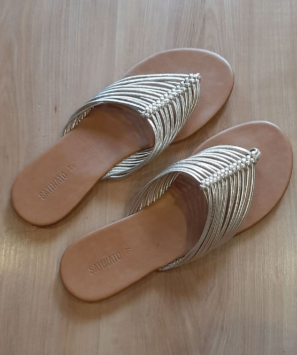 Sandália Rasteira Feminina com Tiras Trançadas Satinato Dourado | Rasteiras femininas, Sandalia rasteira, Sandalia