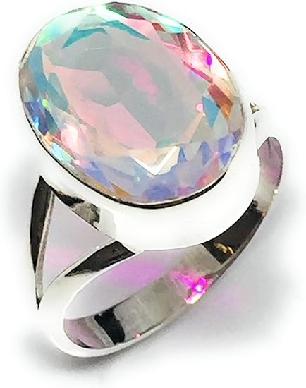 Bague en argent sterling massif avec topaze mystique arc-en-ciel – Taille L1/2 (6): Amazon.fr: Vêtements et accessoires