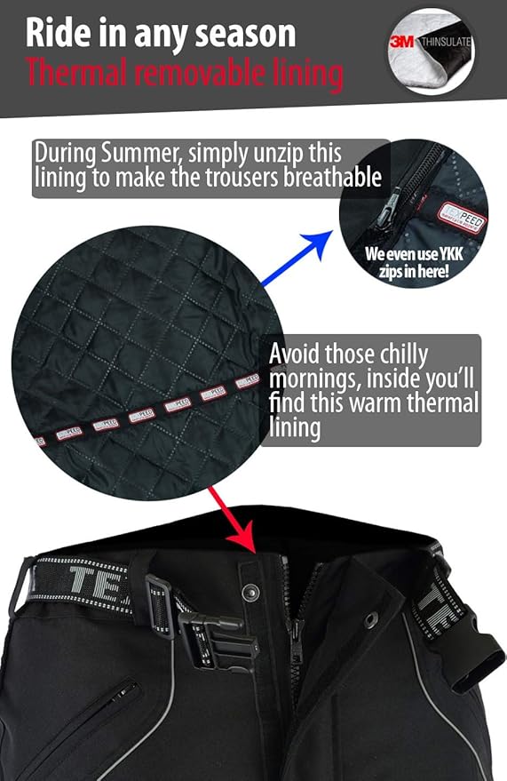 Auto et Moto Pantalons W34 L32 imperméable Toutes Tailles Pantalon de Moto renforcé Noir uni