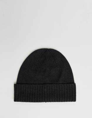 Polo Ralph Lauren - Bonnet en laine mérinos côtelée avec logo joueur de polo - Noir | ASOS