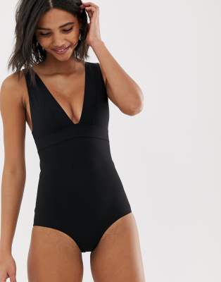 \u0026 Other Stories v-neck swimsuit in black | ASOS