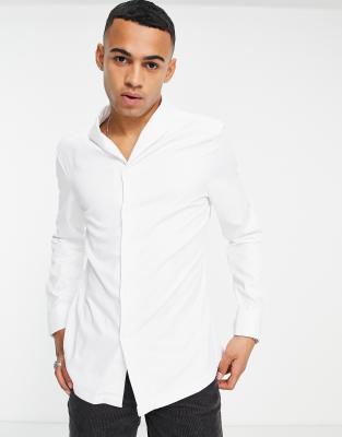 Evesham-nj DESIGN - Chemise en satin coupe slim avec col châle - Blanc | Evesham-nj